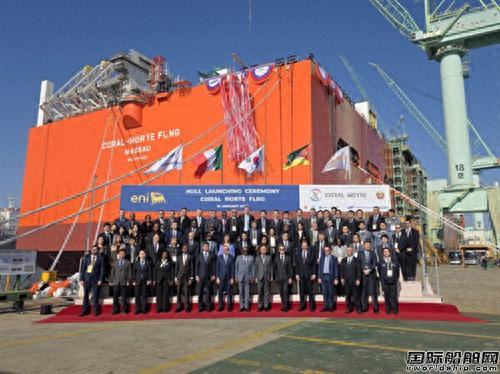 三星重工代表理事崔成安、莫桑比克矿产资源和能源部部长埃斯特旺·托马斯·拉斐尔·帕莱(Estêvão Tomas Rafael Pale),以及ENI集团、日本燃油工程公司日挥(JGC)高管等船东及合作企业代表出席下水仪式。