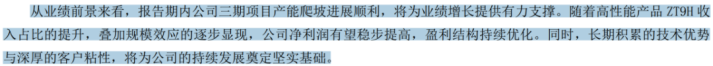并且,公司三期项目产能爬坡进展顺利,将为业绩增长提供有力支撑。随着高性能产品ZT9H收入占比的提升,叠加规模效应的逐步显现,公司净利润有望稳步提高,盈利结构持续优化。