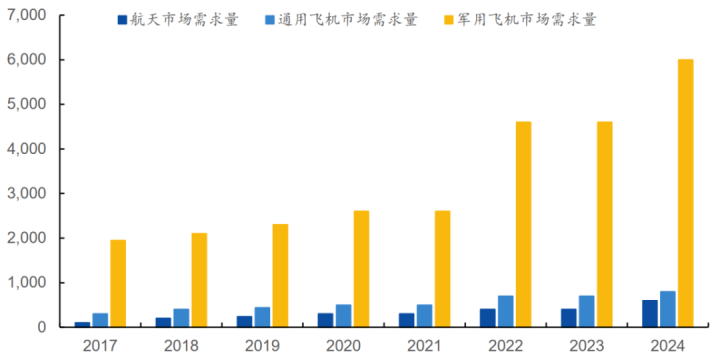其中,中国市场表现尤为亮眼,2024年航空航天军工领域碳纤维需求达9000吨,占总需求的10.7%。